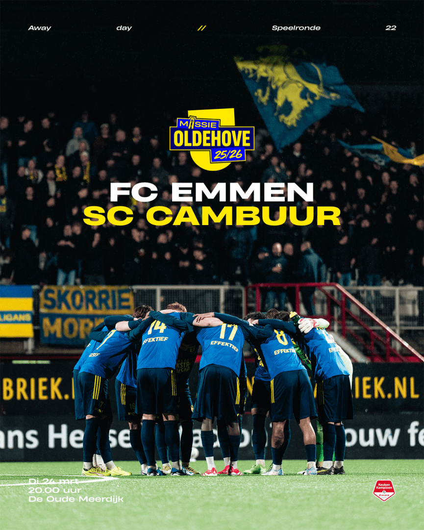 De wedstrijd tussen FC Emmen en SC Cambuur gaat om 20.00 uur van start. De ploeg van Henk de Jong wordt op De Oude Meerdijk gesteund door een vol uitvak met 400 SCC-ers. Voor de thuisblijvers is het duel te volgen via ESPN, Omrop Fryslân, Omroep Leeuwarden en het live-verslag op ons eigen account op X.